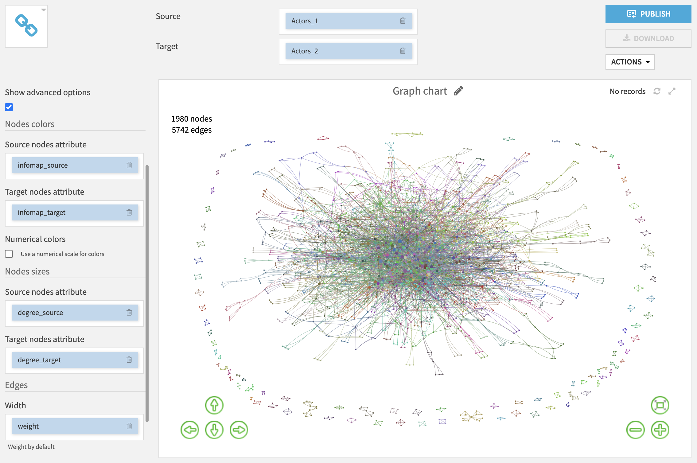 By selecting Show advanced options you will be able to customise the graph display (node color, node size, edge width).