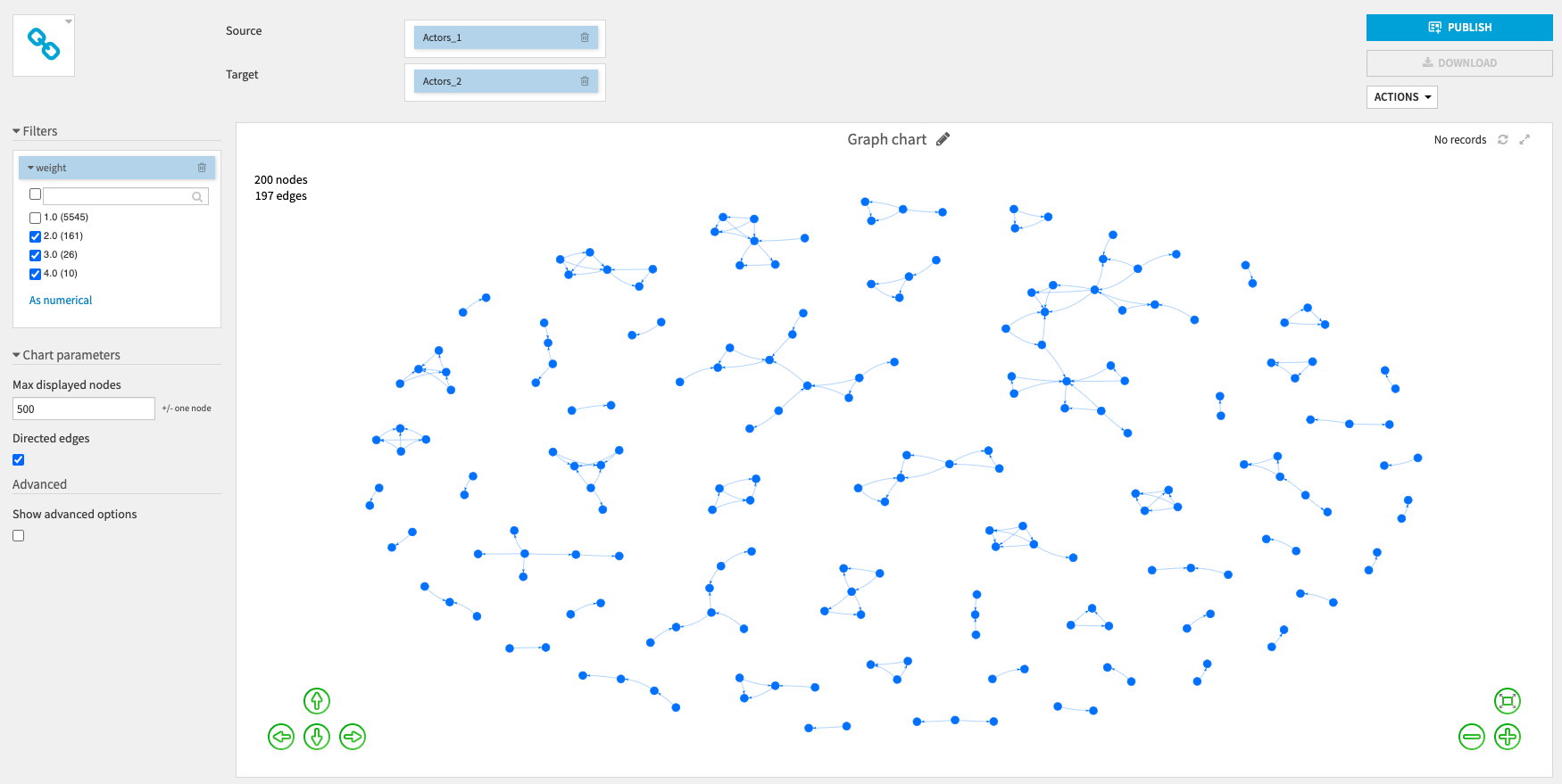 Using the Projected graph recipe, we will first convert this dataset into a graph dataset that contains pairs of actors that played in movies together.